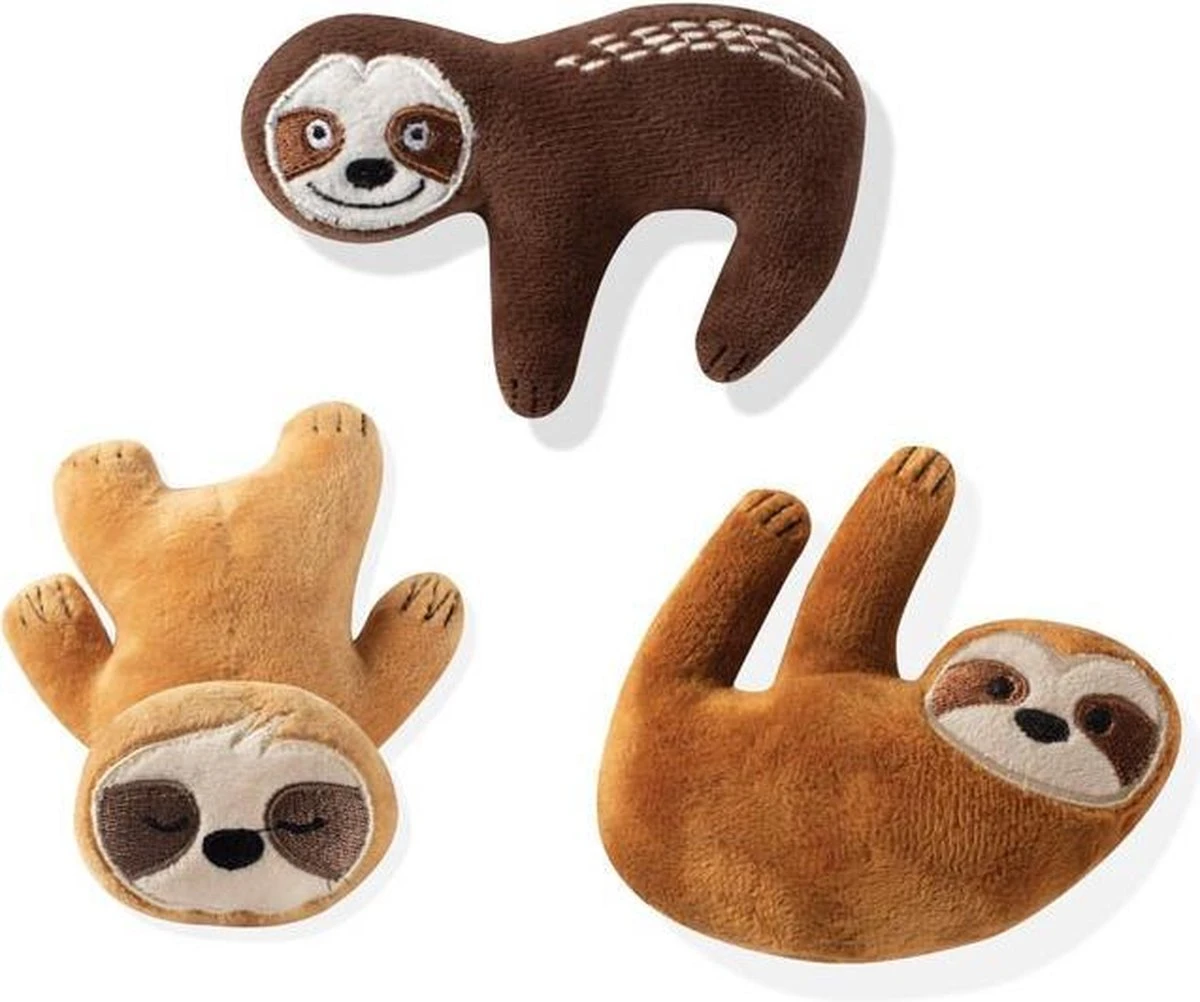 Set van 3 stuks; Pluche Luiaards. Luide pieper in elk speeltje. Afm. ca. 9x10cm per speeltje.