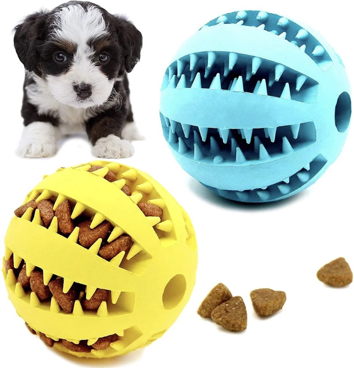 Geschikt voor alle honden: De honden voer bal is geschikt voor honden van alle leeftijden en maten. Er zijn verschillende maten en moeilijkheidsniveaus beschikbaar, zodat je de juiste bal kunt kiezen op basis van de behoeften en vaardigheden van je hond.