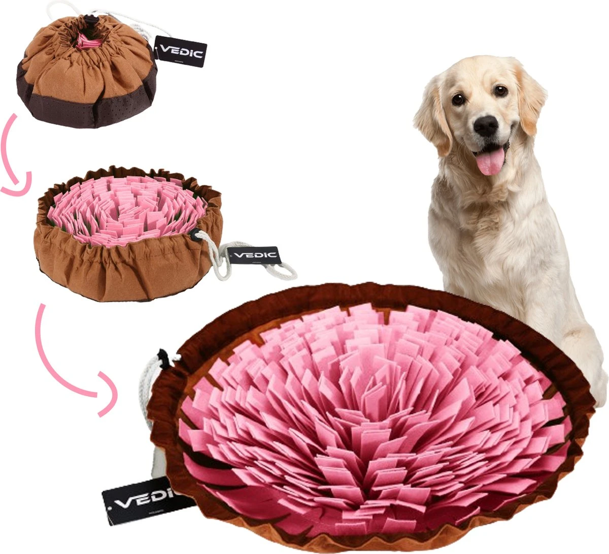 VEDIC® – XL Snuffelmat Roze/Bruin – Hondenspeelgoed- Antischrok – 45 CM – Hondenspeelgoed – Honden En Katten – Intelligentie – Slow Feeder – Voerbak